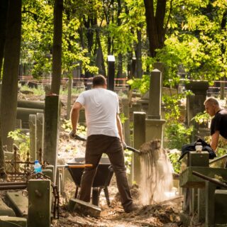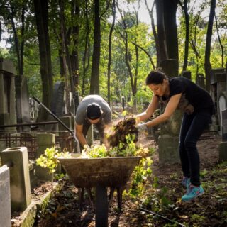 The necropolis, remaining under the care of the Jewish Community in Warsaw since 2001, miraculously survived the time of WWII. In the post-war period it was left neglected for many years, gradually falling into ruin. But with time there occurred occasional attempts to restore it to its former glory. The Cultural Heritage Foundation is now running conservation and clean-up works at the same time. The latter have an additional social impact as they often bring together volunteers and supporters of our foundation. The undertaken activities include mostly collecting and removing trash, broken branches, and self-sown plants from the cemetery quarters.